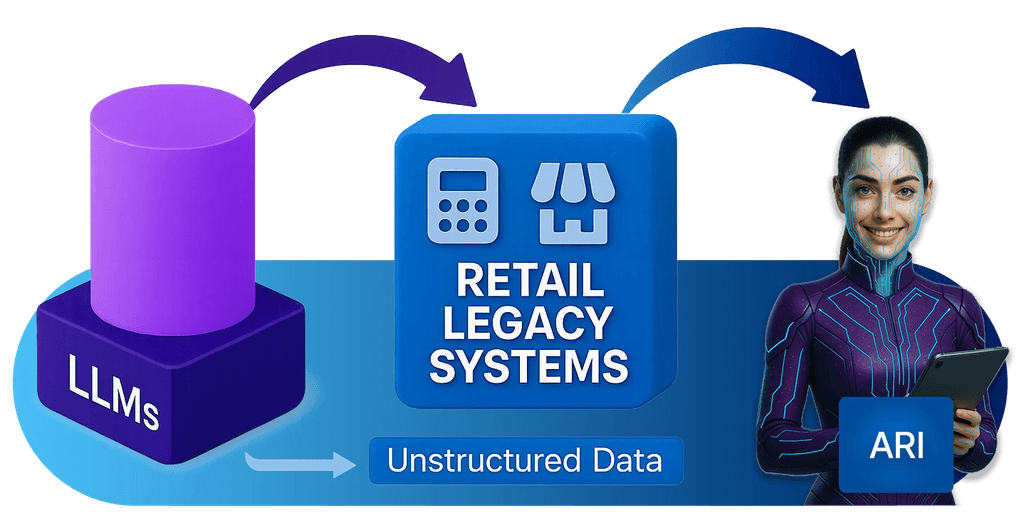 We combine the power of LLMs (Large Language Models) with your business context – data across your systems, documents and reports as well as the tribal knowledge of your experienced team members – to build your ARI (Artificial Retail Intelligence)