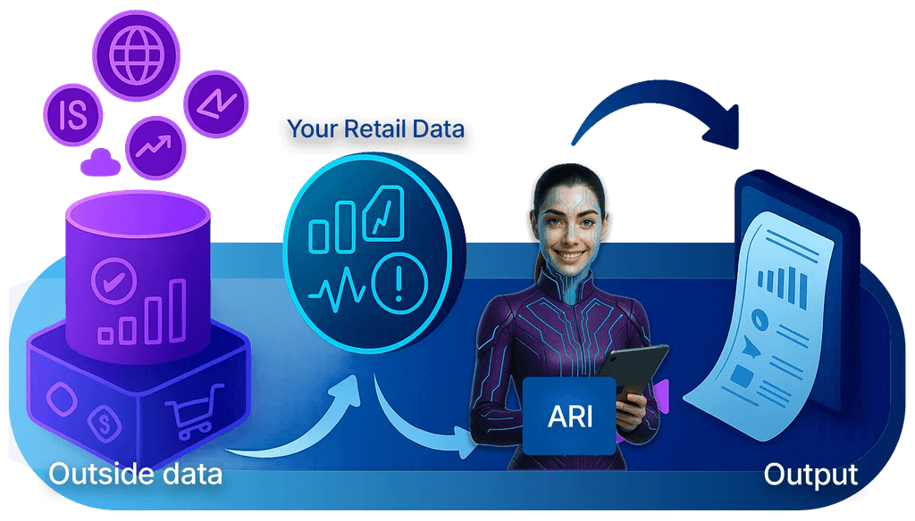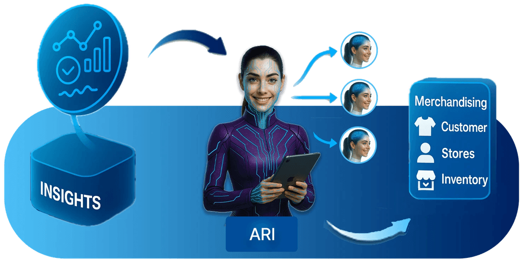 ARI (Artificial Retail Intelligence) augments decisions, automates actions, manages exceptions, and seamlessly orchestrates workflows all under human control.